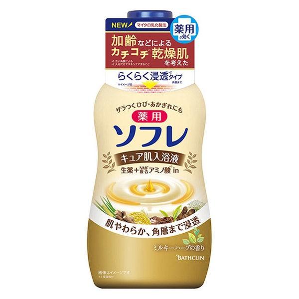 薬用ソフレ キュア肌スキンケア 保湿 ミルキーハーブの香り 本体 480ml お湯の色 アイボリーホワイト バスクリン