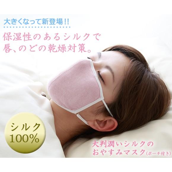 大判 潤いシルクのおやすみマスク ポーチ付き 就寝 用 シルク マスク 潤いマスク おやすみマスク シルク 洗える マスク 布 寝るとき マスク 潤う 唇 のど 通気性 アジャスター付き 保湿性 肌に優しい シルク 口内乾燥 安眠 風邪予防 fm