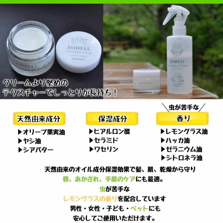 バーム yodell outdoor balm ヨーデルアウトドアバーム 西部頭髪 アウトドア オリーブオイル ヤシ油 シアバター 乾燥対策 保湿 バーム スキンケア 天然由来 オイル成分 保湿効果 髪 肌 全身に使えるハンドクリーム 唇 あかぎれ 手肌 ケア 虫除け レモングラス