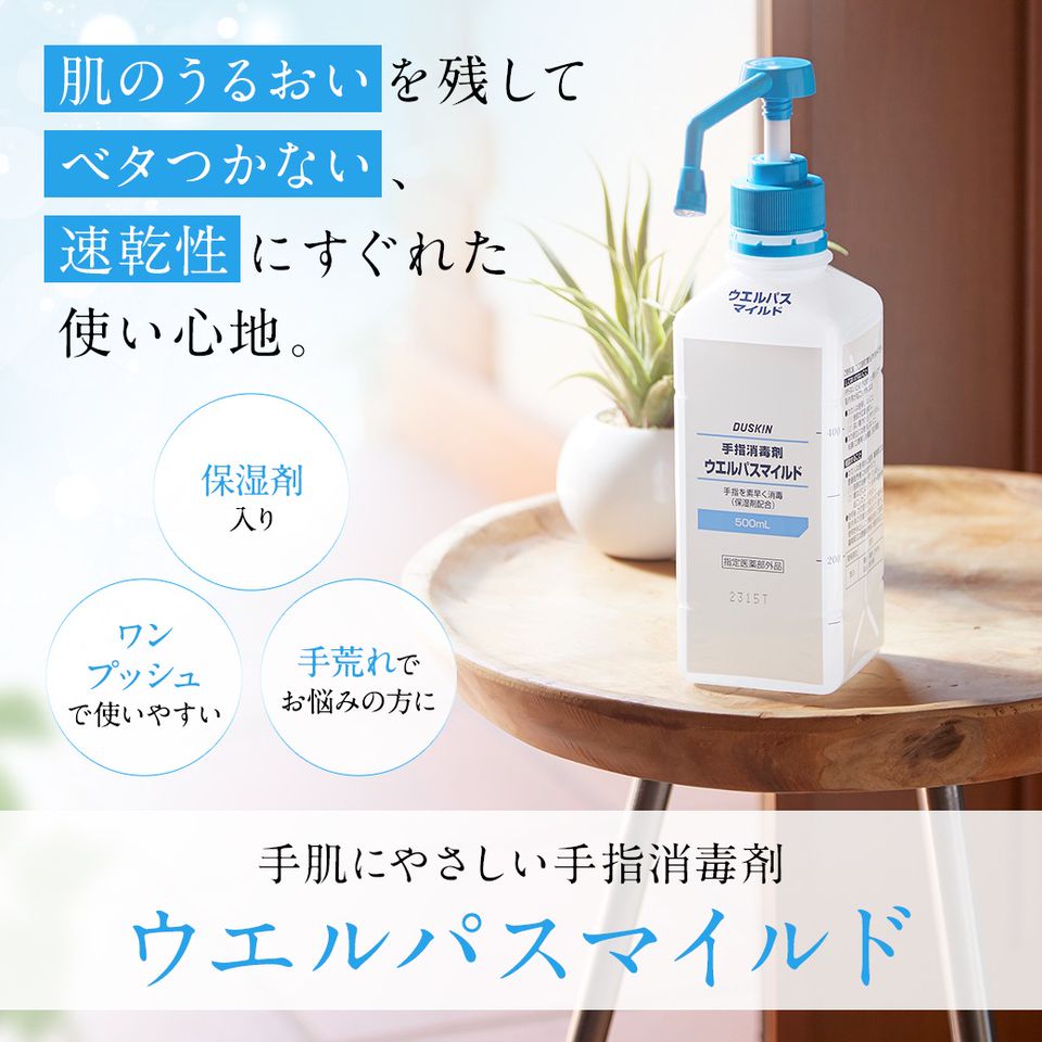 ダスキン 手指消毒剤 ウエルパスマイルド 500ml ポンプつき duskin 丸石製薬 ウエルパス ウェルパス 消毒用アルコール 医薬部外品 保湿剤配合 インフルエンザ対策 消毒液 レビューで 手指消毒剤