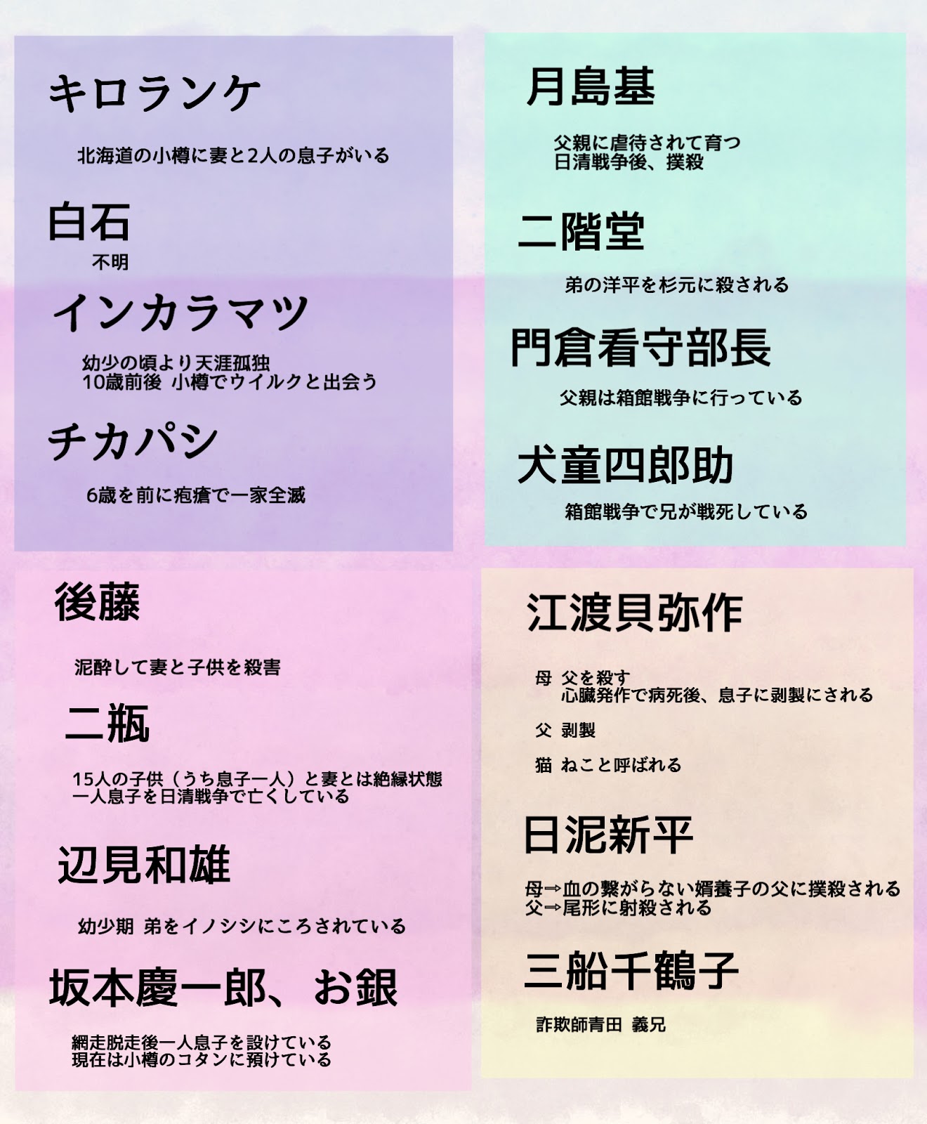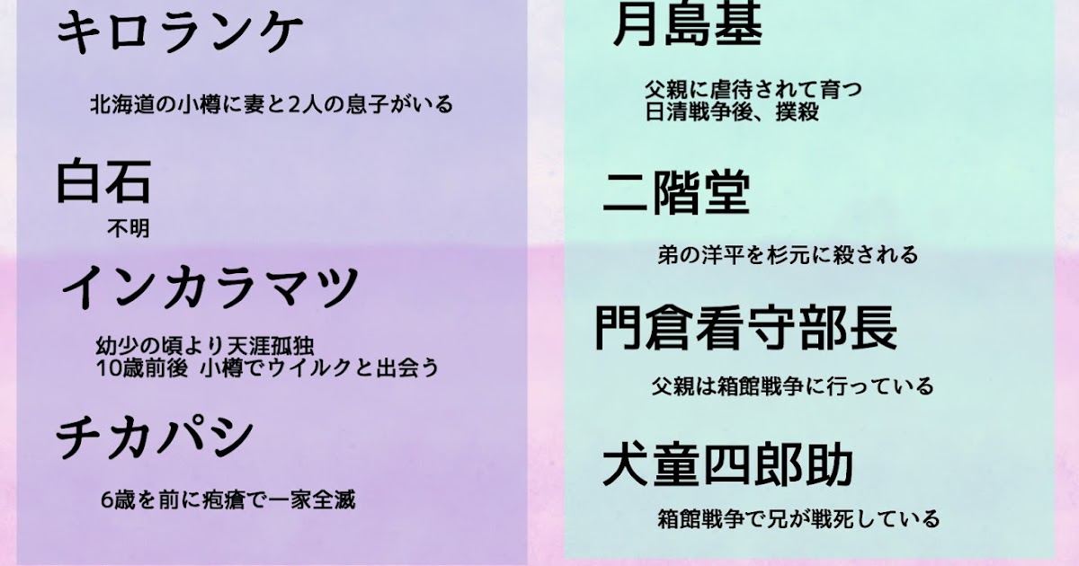 ゴールデンカムイ 第1回キャラクター人気投票まとめ カモのなんでもランキング