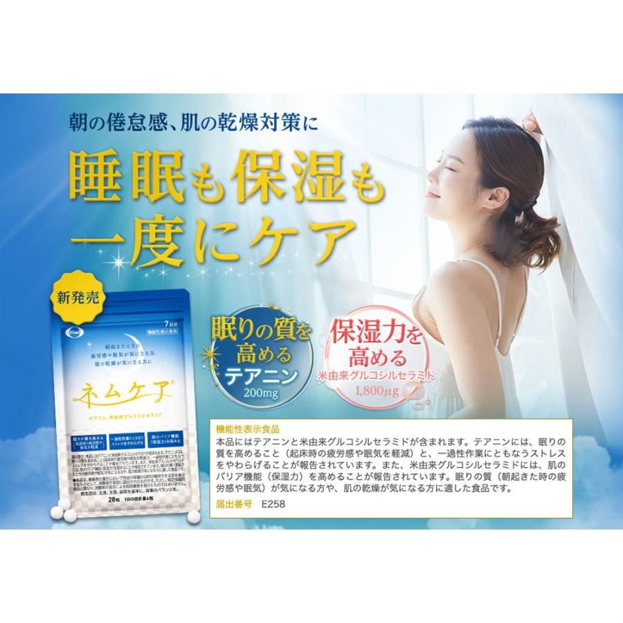 エーザイ 睡眠保湿サプリ ネムケア 120粒入 朝起きたときの疲労感や眠気が気になる方 肌の乾燥が気になる方に 機能性表示食品 サプリメント テアニン 米由来グルコシルセラミド エーザイ サプリ