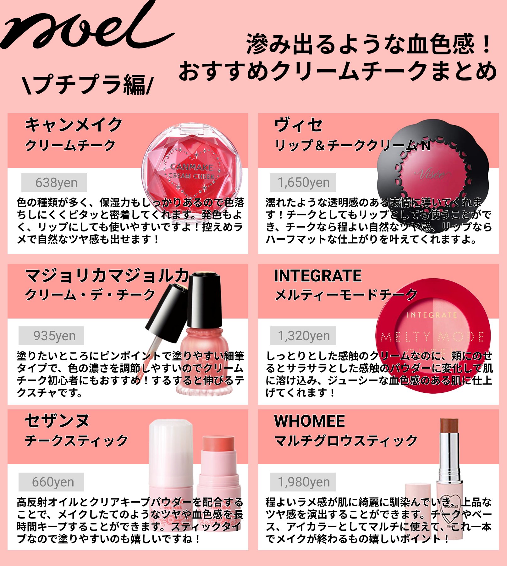 noel cosme公式 on twitter おすすめのクリームチークを紹介 プチプラからデパコスまで人気のアイテム12選をまとめました クリームチークは肌から滲み出るような血色感が出せるので 血色よく見えるのが嬉しい しっかり発色で リップとして使えるものも多いですよ