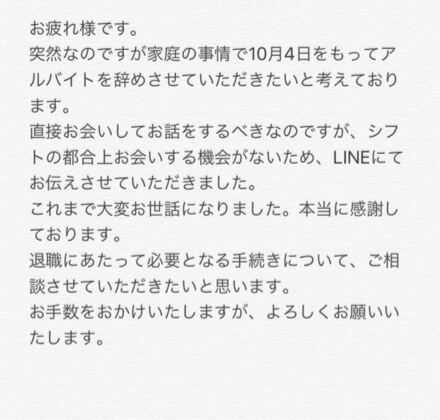 退職 ライン 文章