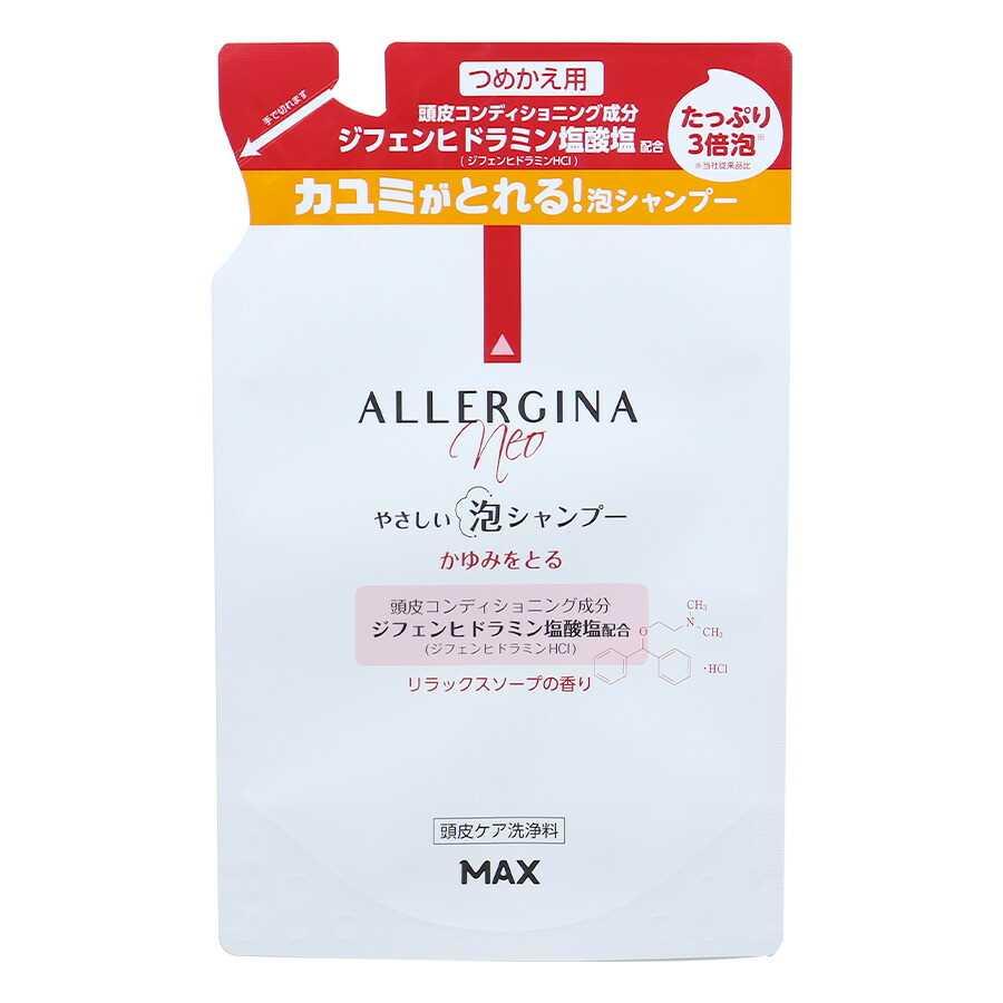 シャンプー 泡 詰め替え かゆみ フケ 頭皮 かゆい 乾燥 保湿 臭い オイル デリケート 泡立て不要 アレルジーナneo やさしい泡シャンプー 詰め替えパウチ 400ml 30031608 マックス石鹸webshop yahoo 店 通販 yahoo ショッピング