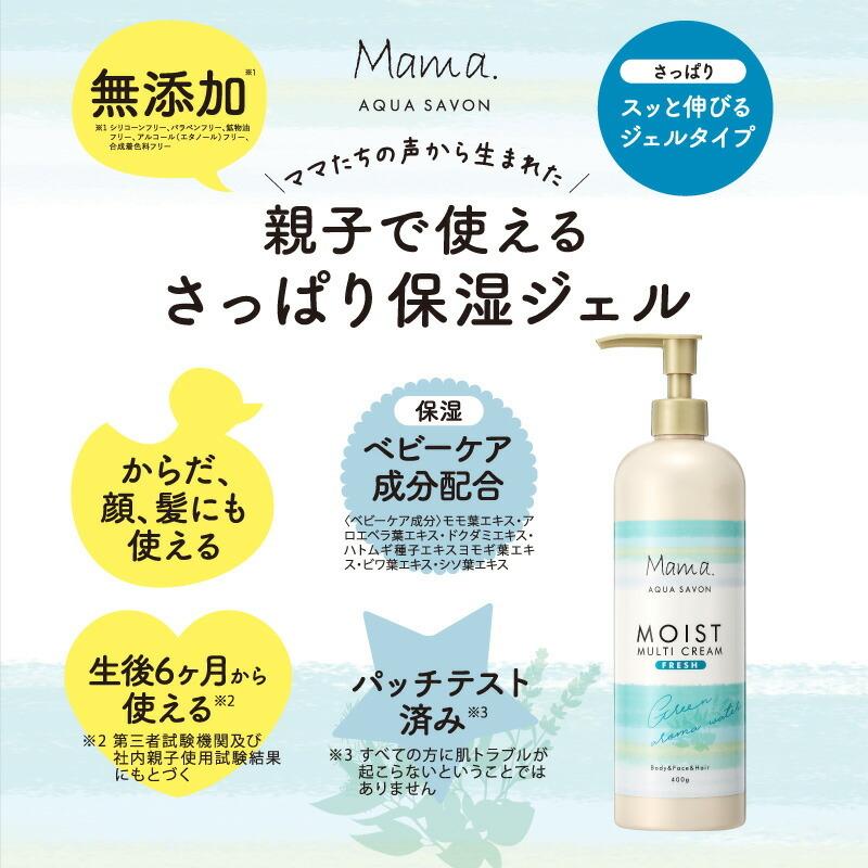 ママアクアシャボン mama aqua savon フラワーアロマウォーターの香り モイストマルチクリーム 400g レディース コスメ 親子 保湿 身体 顔 髪 乾燥 全身 ケア 生後6ヶ月から使える ublanc