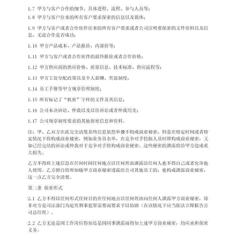 员工保密协议书模版材料 法律界