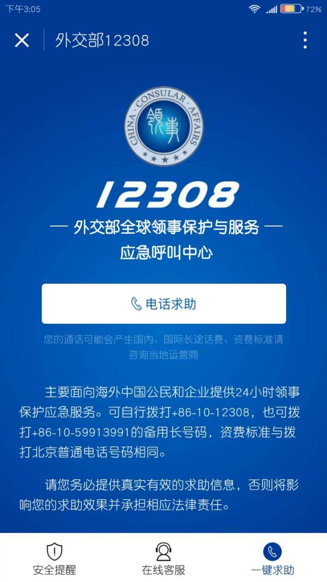 领事保护应急电话