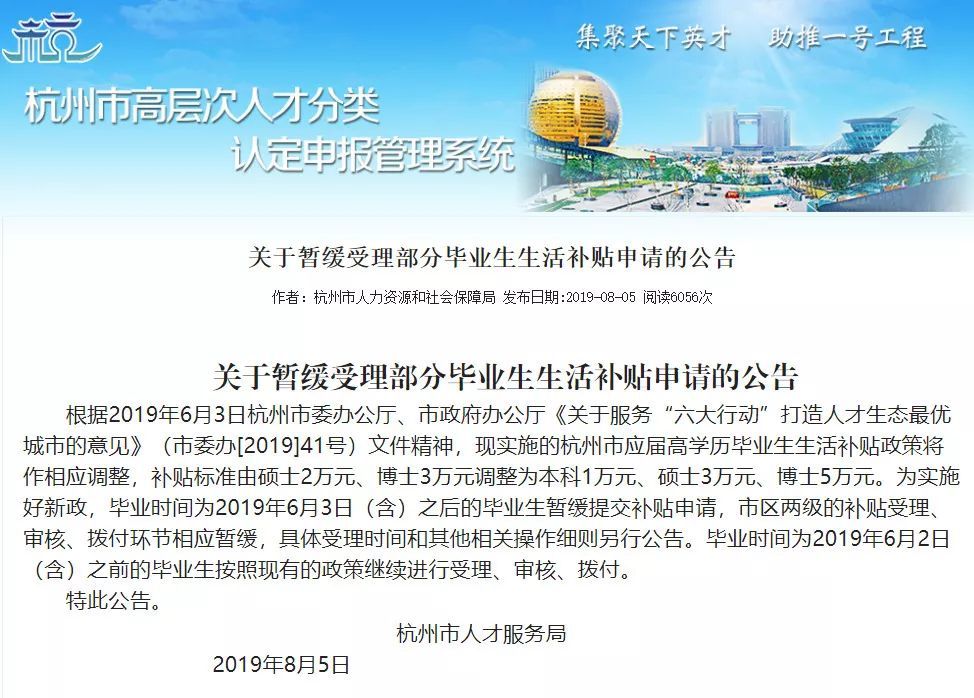 2021余杭高校毕业生生活补贴申请政策 杭州本地宝