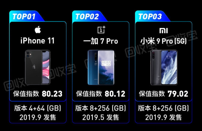 6park com 2020年手机保值榜