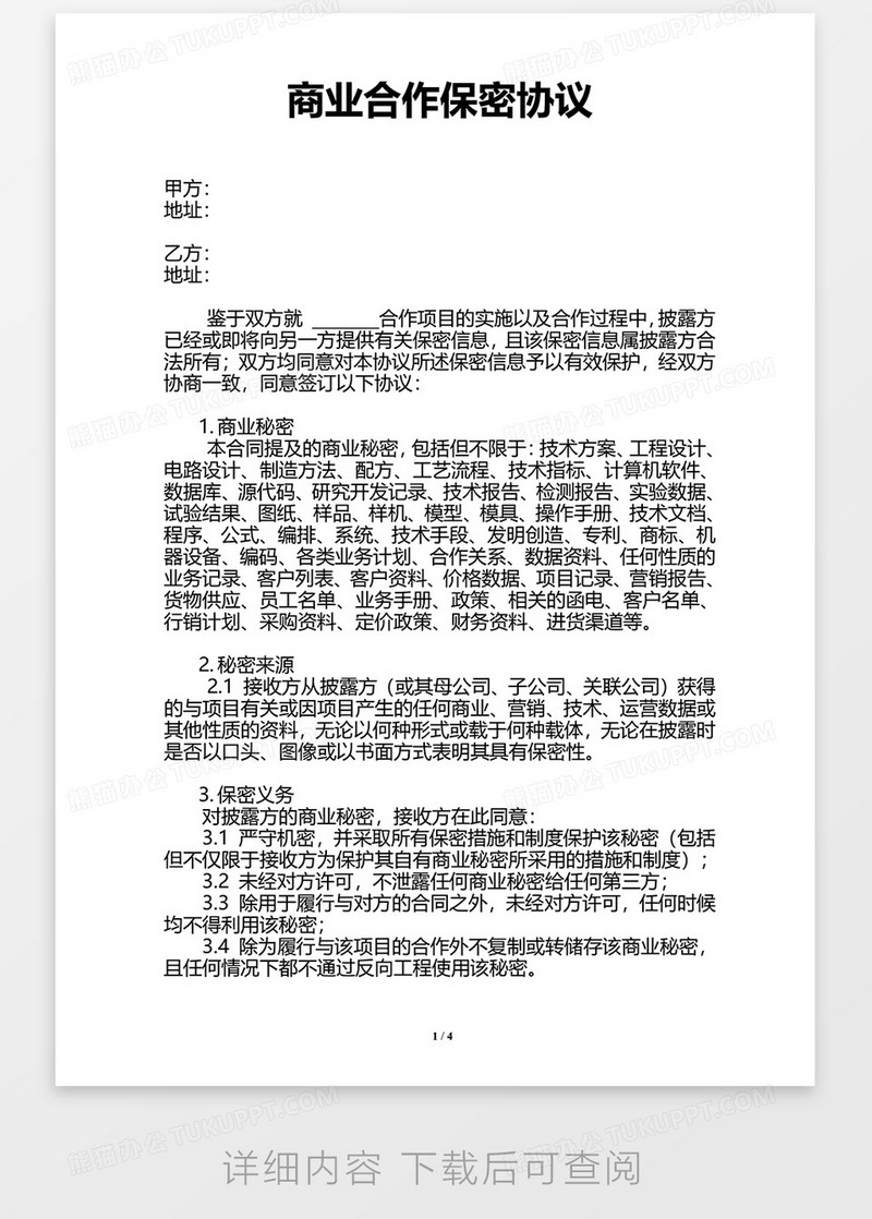 商业及技术保密协议范本 免费范文 绘艺素材网