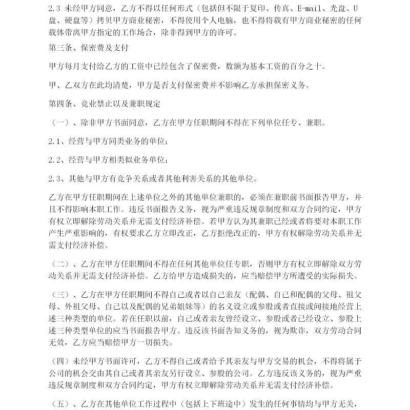 简约企业员工入职保密协议 wps 找协议网