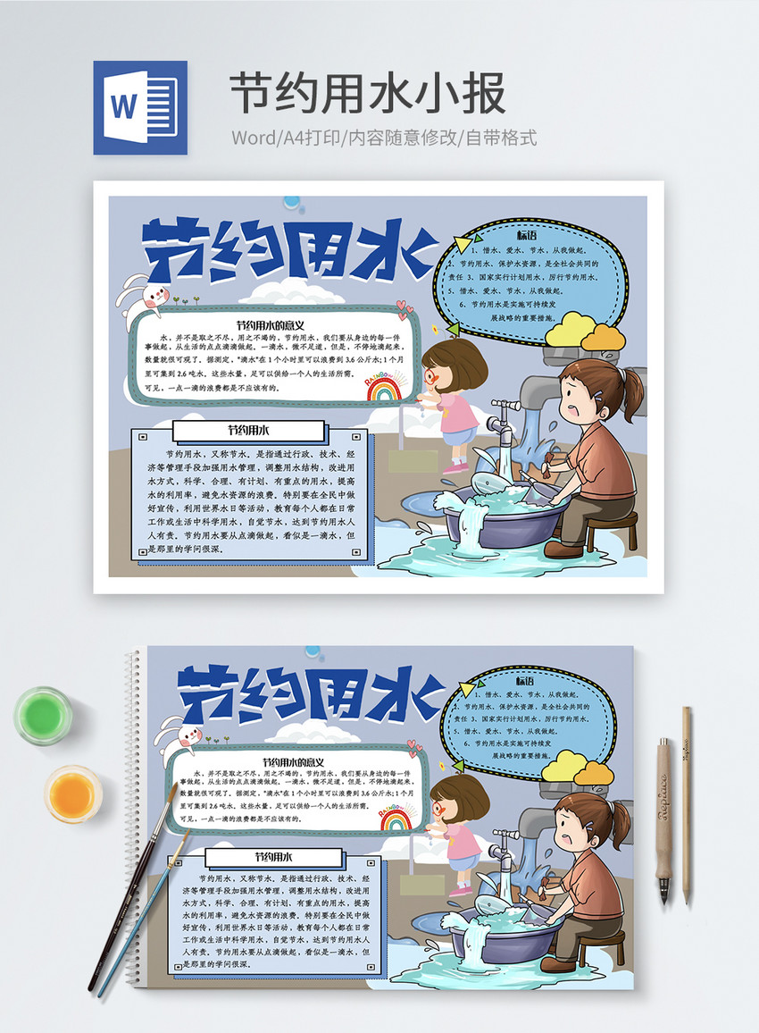 保护环境节约用水word小报图片 正版模板下载401233732 摄图网