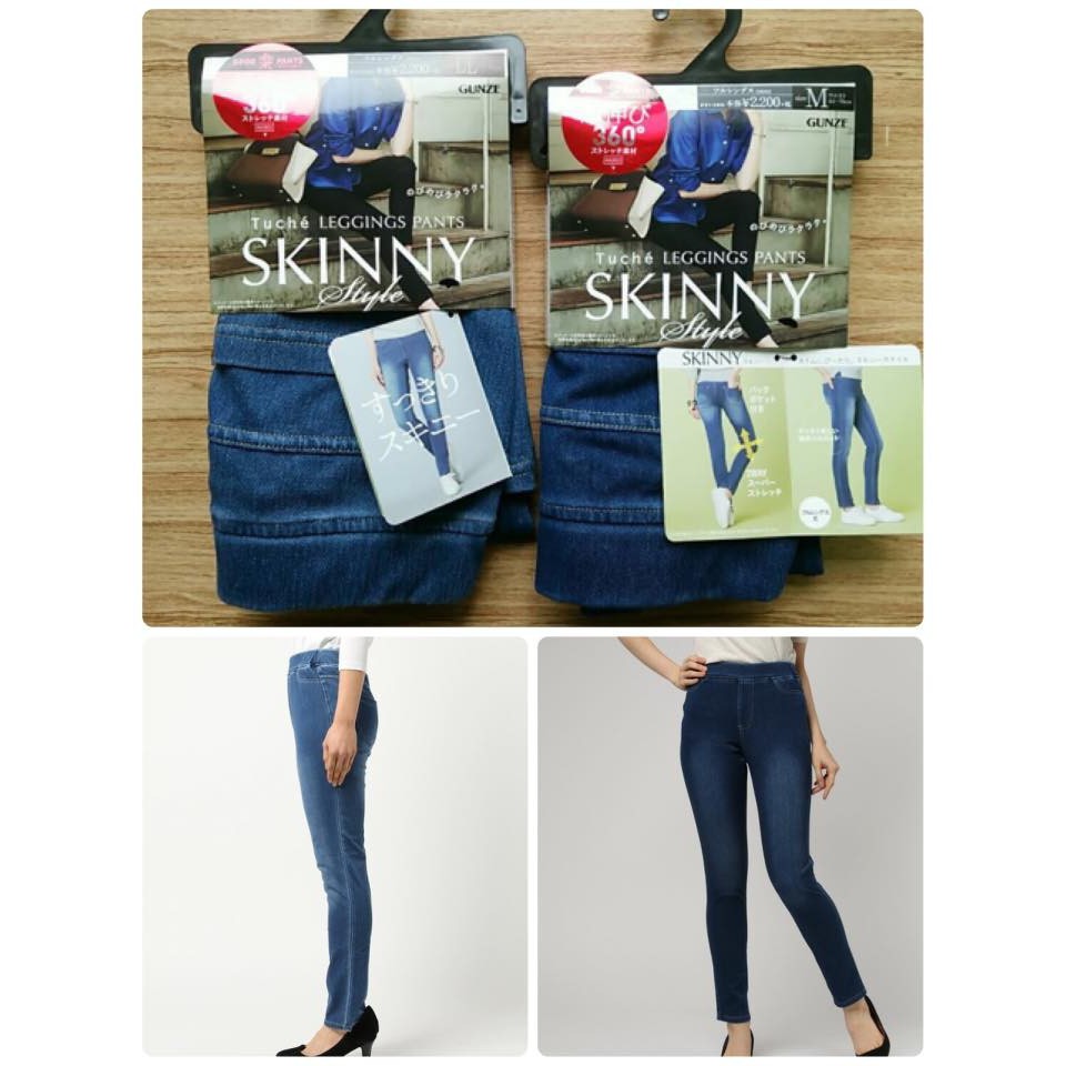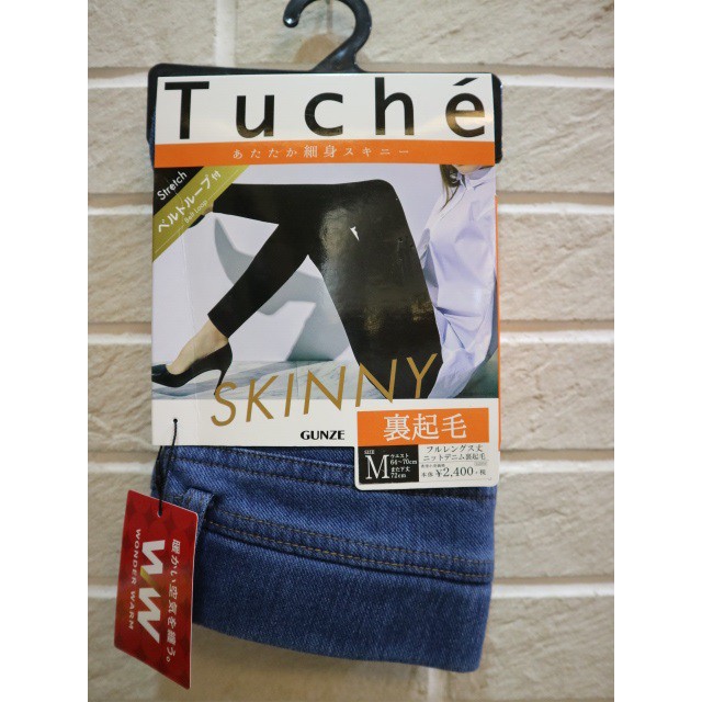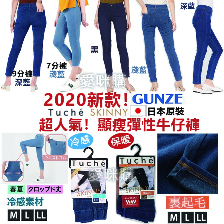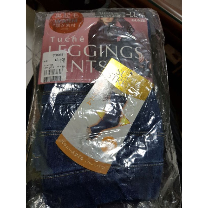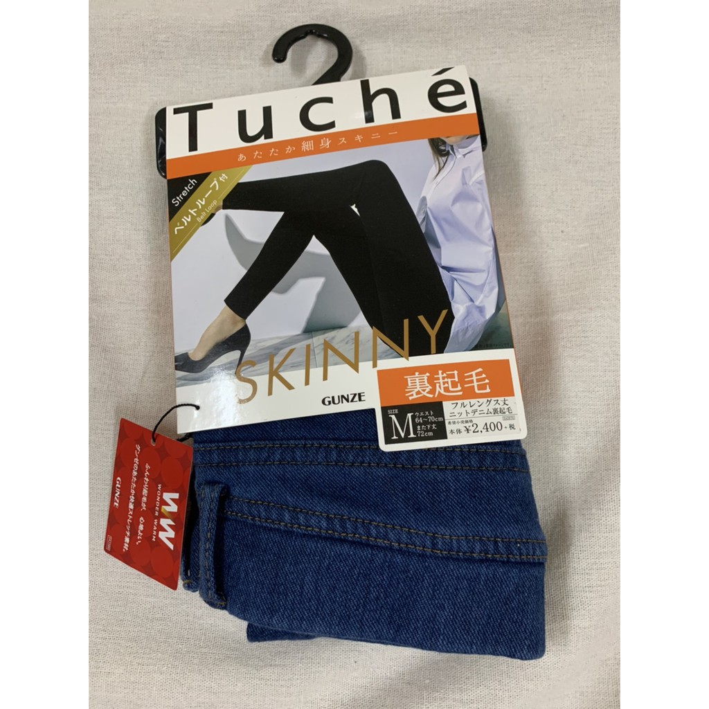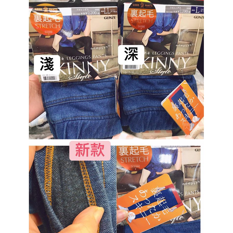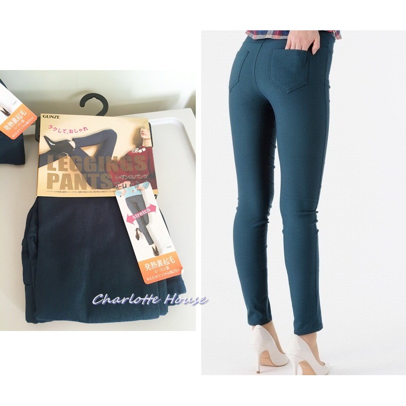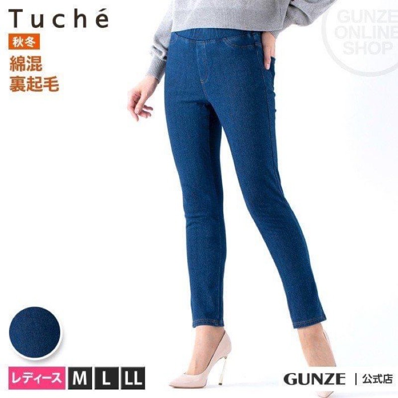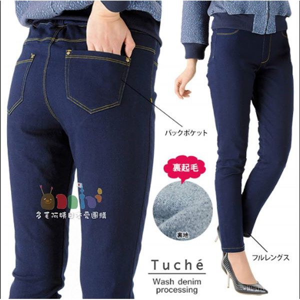 保暖丹寧 gunze 熱賣裏起毛牛仔口袋細身褲