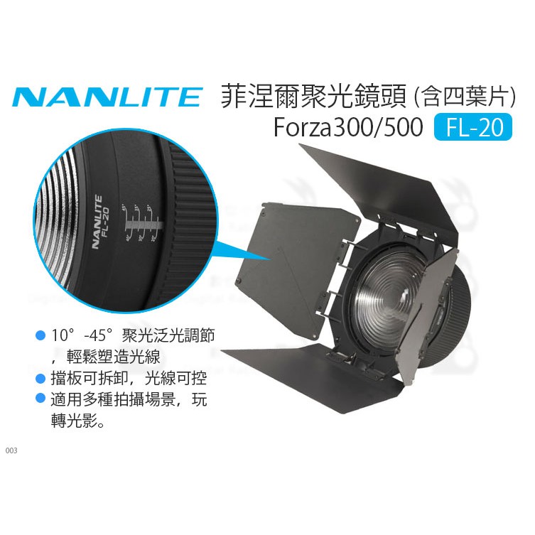 數位小兔 nanlite 南光 fl 20 菲涅爾聚光鏡頭 附四葉片 forza300 500 保榮 公司貨 調焦鏡頭