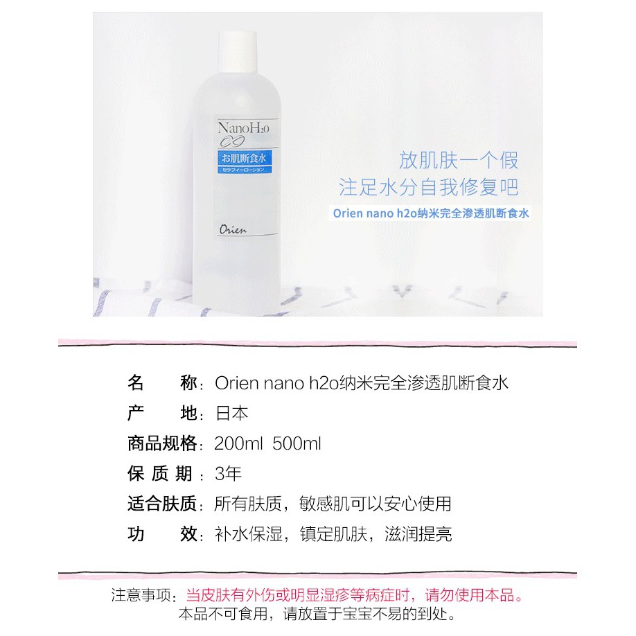 orien nano h2o toner 纳米渗透肌肤断食水 无添加大瓶保湿爽肤水敏感肌可用 500ml