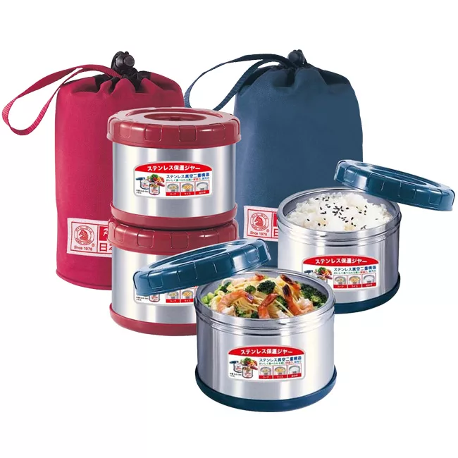 博客來 日本寶馬不鏽鋼真空保溫便當盒 0 5lx2 附提袋 shw gl 500x2 藍色