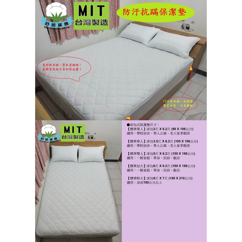 保潔墊 雙人 100 polyester 防潑水平單式保潔墊 台灣製造 超值買一送一