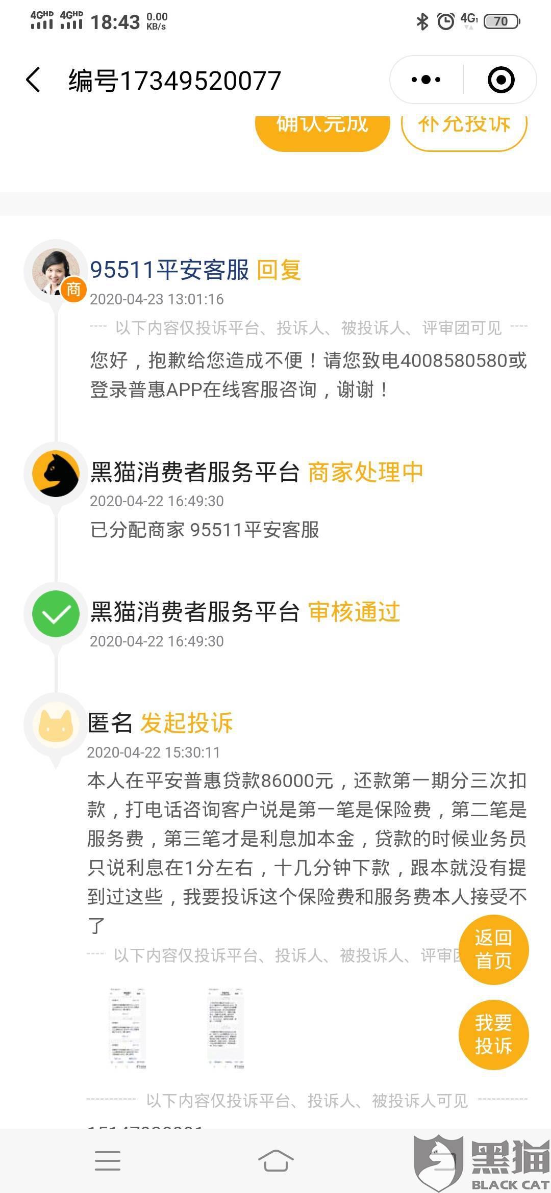 黑猫投诉 平安普惠贷款利息里有服务费和保险费 加一起利息超过国家规定 不认可服务费和保险费 平安普惠 平安普惠 利息 新浪新闻