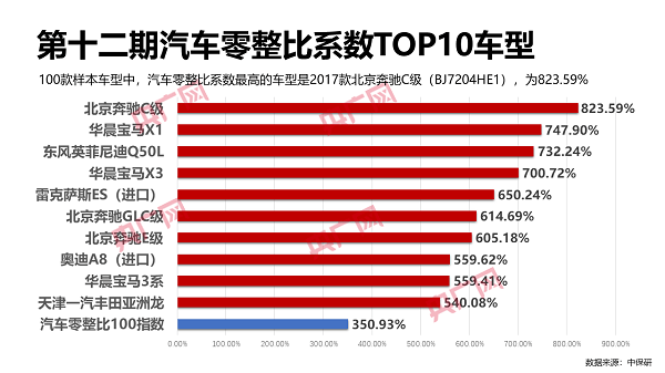 中保研最新零整比指数公布 豪华品牌屠榜 ofweek智能汽车网