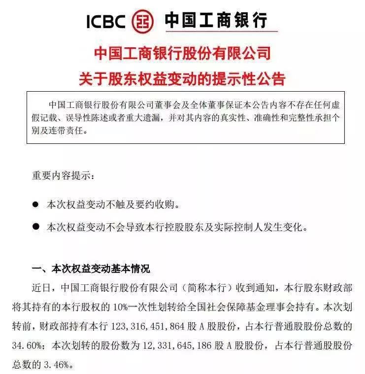 1150亿大动作 财政部将所持农行工行股权10 划给社保基金 对你我养老有何影响 工作
