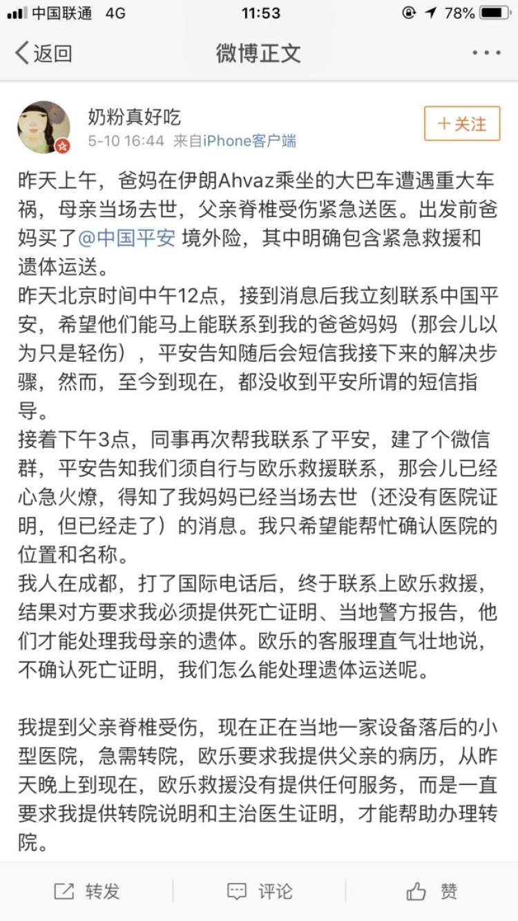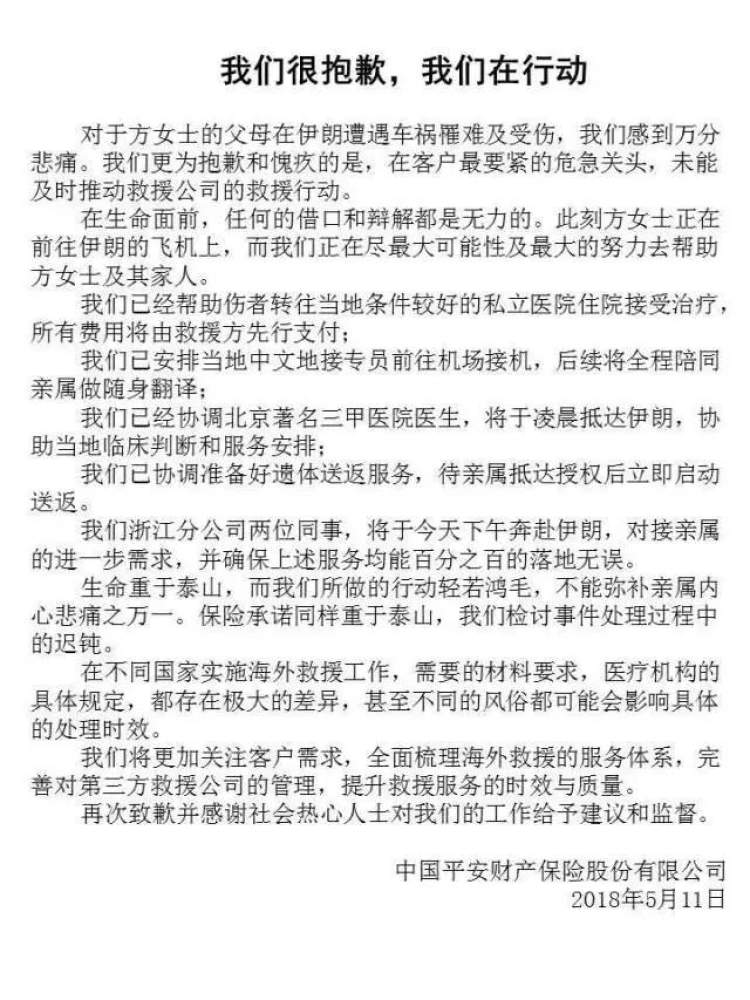 父母在伊朗旅游遭遇车祸一死一伤 求救时保险公司却只顾索要材料不作为 平安发布致歉出境游保险要注意什么 周到