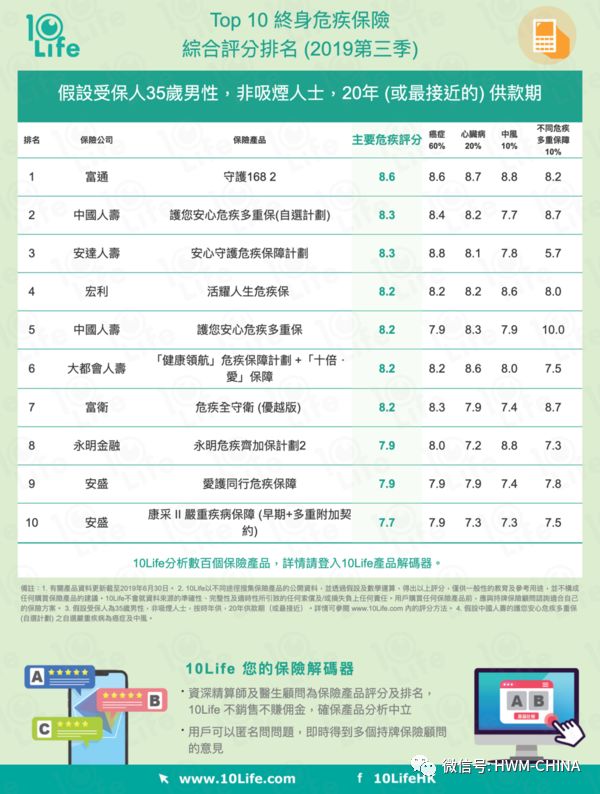 10life的評分方法 終身危疾保險 critical illness insurance critical illness insurance