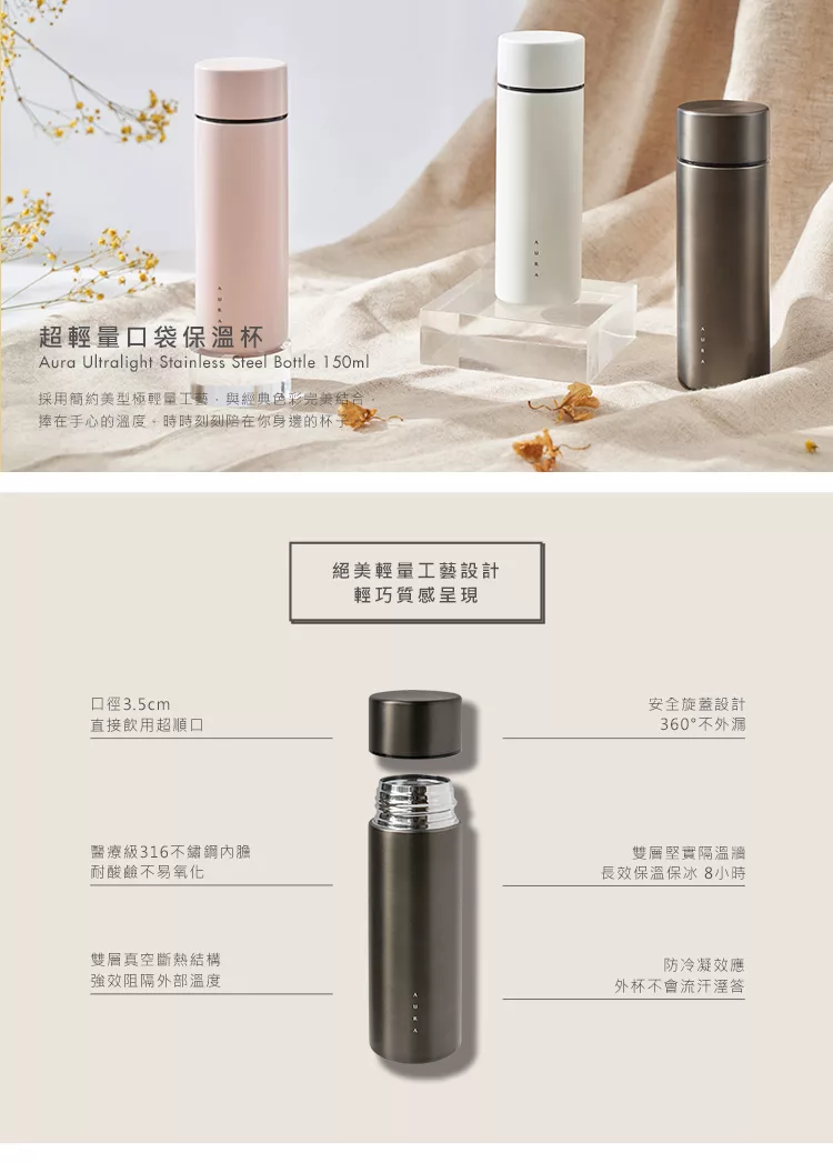 極致輕量口袋保溫瓶 150ml 醫療級316不鏽鋼 迷你 輕巧 口袋杯 保溫杯 真空保溫瓶 隨手杯 arz b392