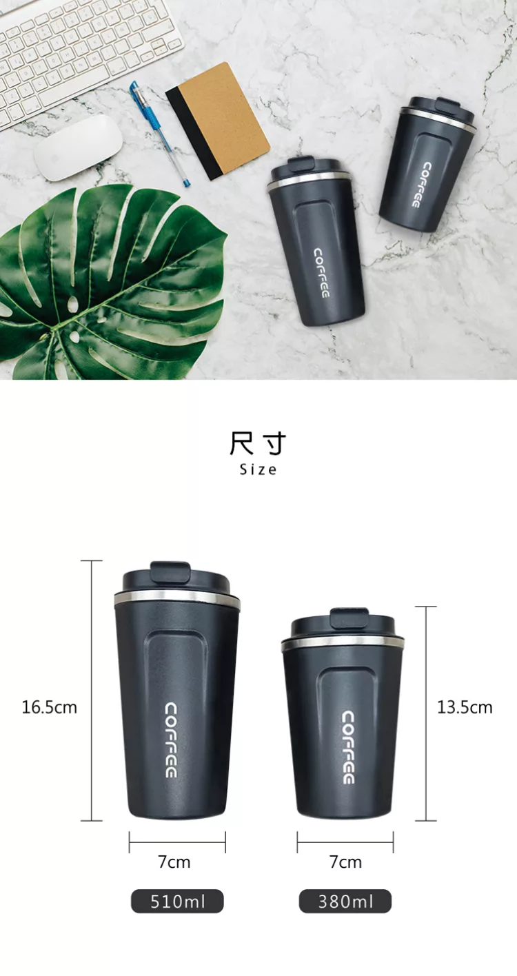 304不鏽鋼翻蓋直飲咖啡保溫杯 買一送一