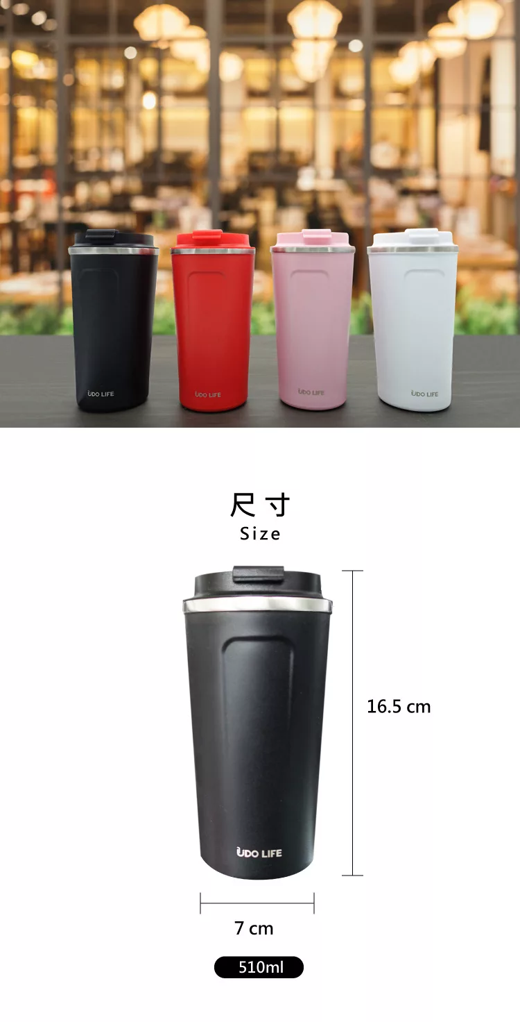 博客來 優多生活 udolife 不鏽鋼翻蓋咖啡保溫杯510ml黑色
