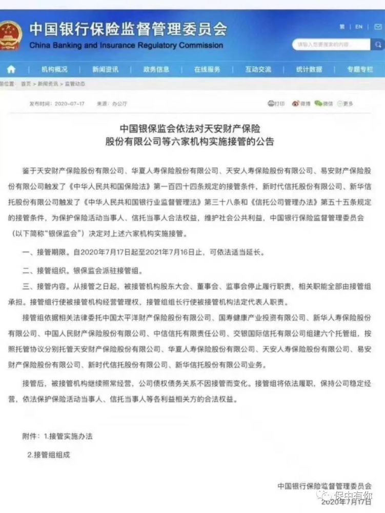 天安财险前7月保费收入98亿元认购新时代信托产品143亿逾期 中国保监会