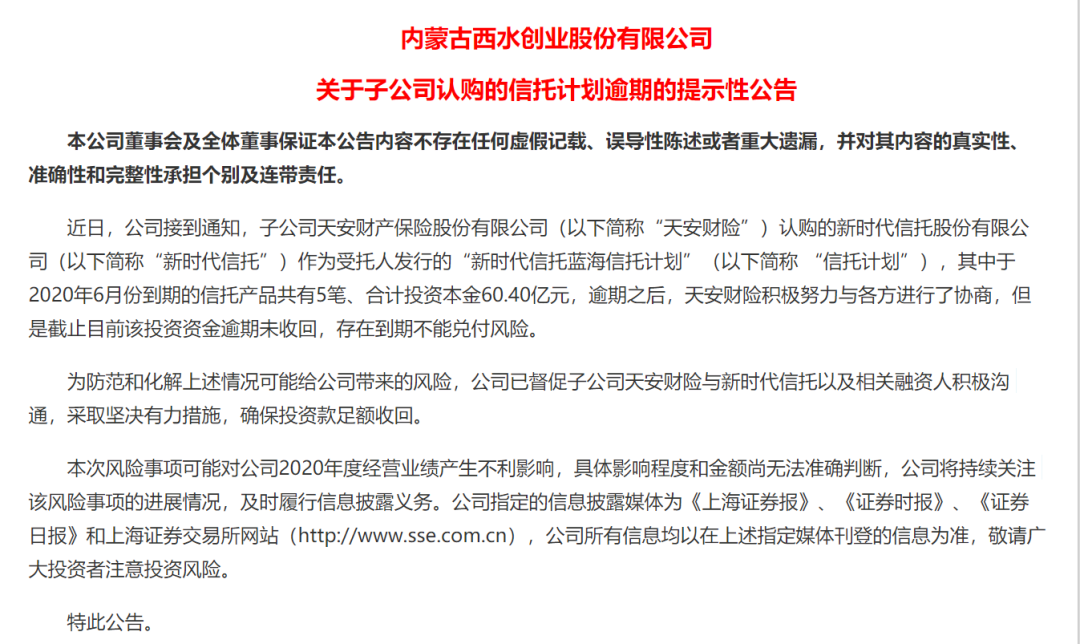 天安财险60亿 踩雷 新时代信托逾期 双双被接管 新时代信托 新浪财经 新浪网