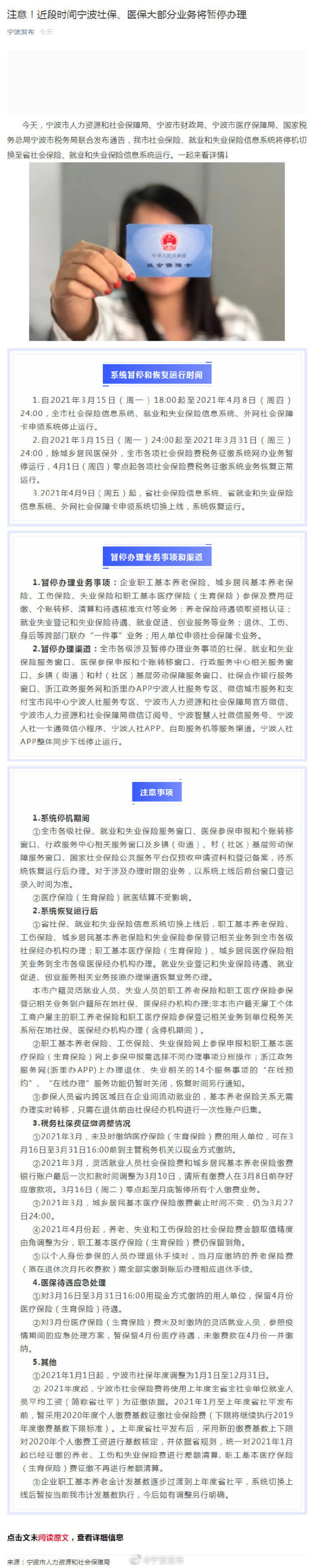 注意 近段时间宁波社保 医保大部分业务将暂停办理 腾讯网