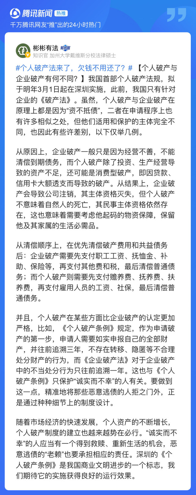 重磅 这个民营经济大省正式探索个人破产制度 哪些人可以破产 破产能保留哪些财产 答案清楚了 每日经济新闻
