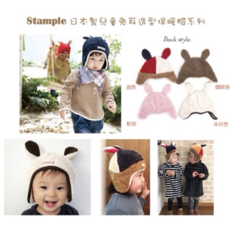 日本stample寶寶保暖帽 小兔耳 深藍