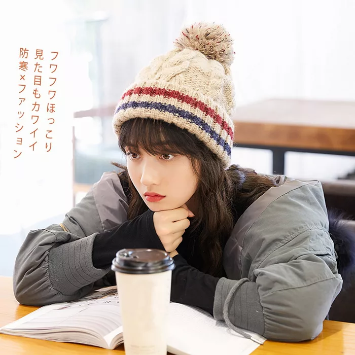 博客來 日本beautyjapan 抗寒保暖加厚內絨毛麻花毛球針織毛線帽0082米
