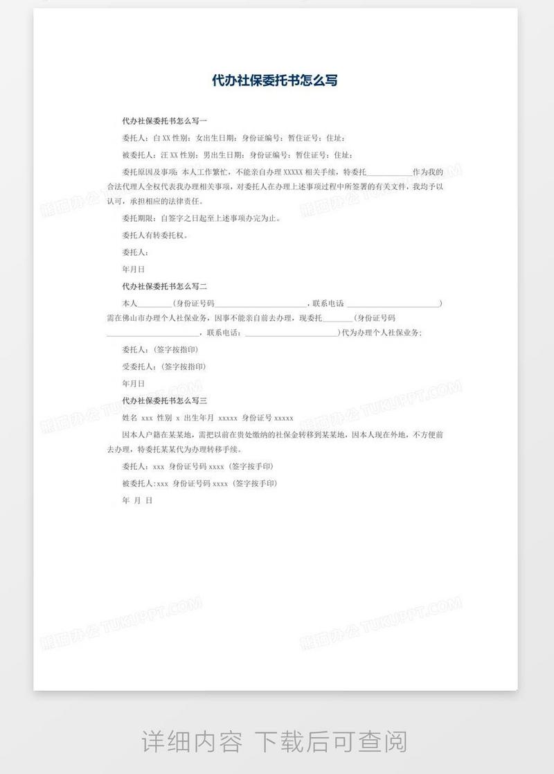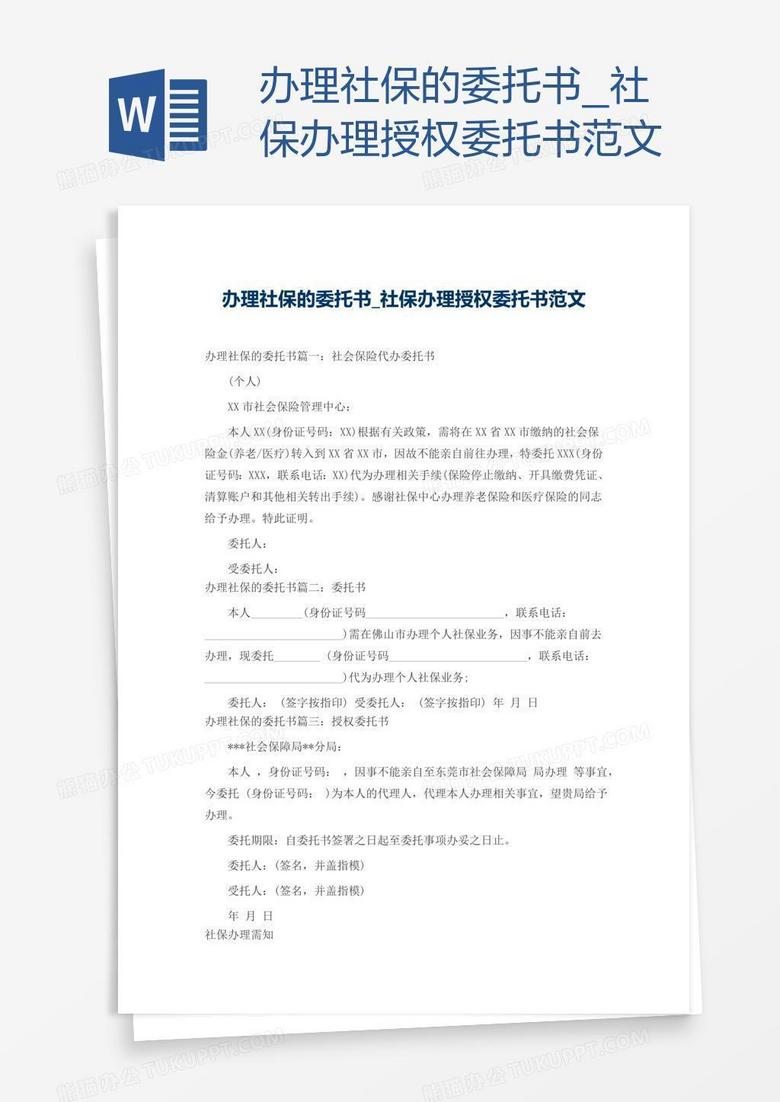 办理社保委托书范本标准word模板下载 标准 熊猫办公