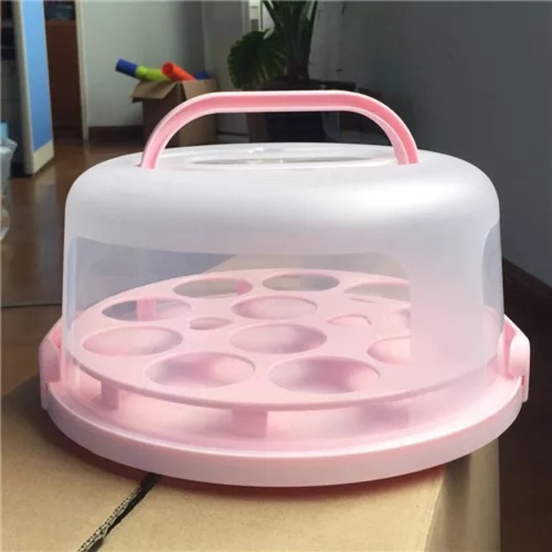 加厚8 10寸蛋糕盒塑料環保pp便攜式手提烘焙包裝盒 粉粉的 生日蛋糕多用盒 馬芬盒