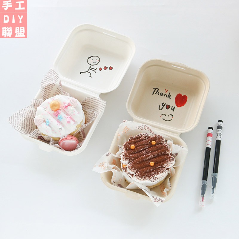 烘焙包裝盒 網紅四寸便當蛋糕盒有圖一次性紙漿環保漢堡手繪盒子