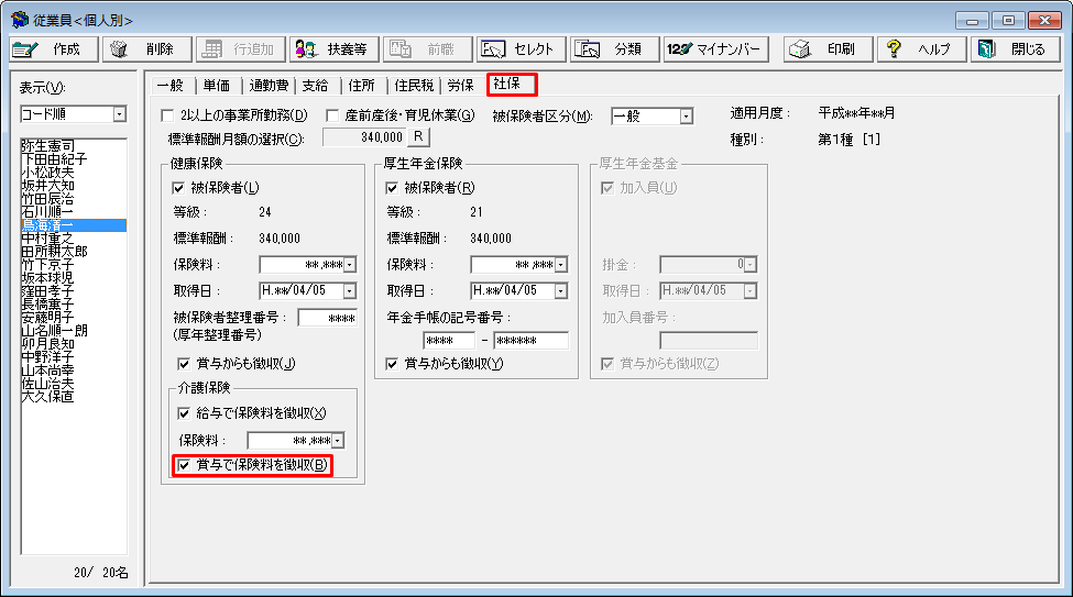 社会保険の設定 従業員 個人別 の 社保 タブ 弥生給与 サポート情報