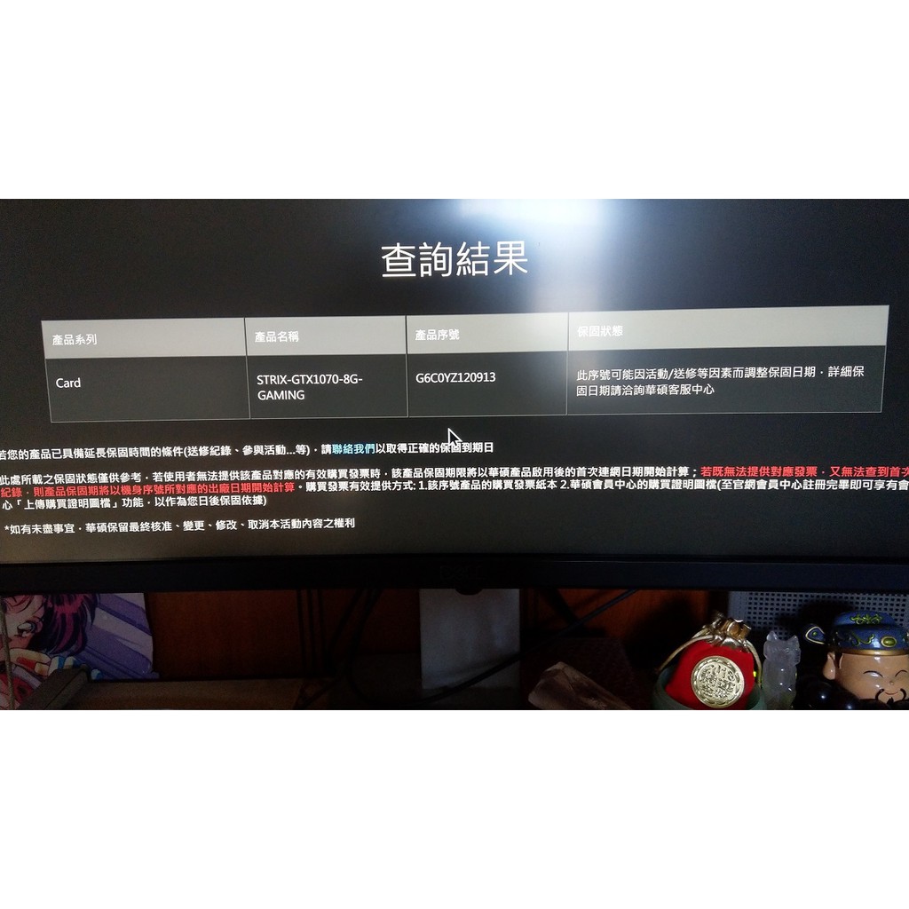 保固查詢中 華碩 asus gtx1070 8g dual 雪原豹 顯示卡