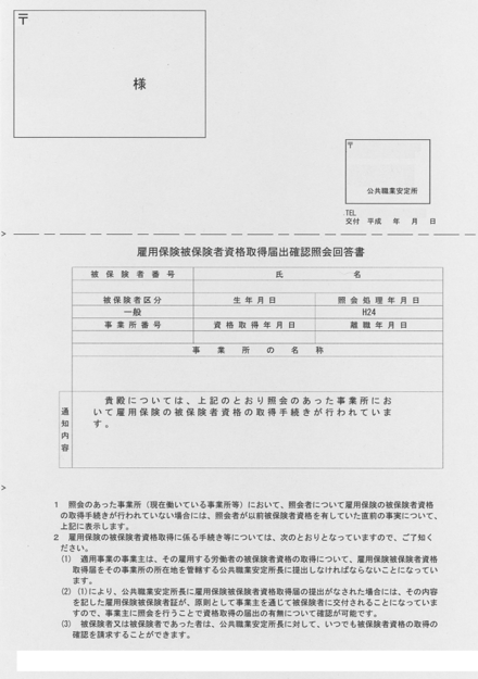 雇用保険被保険者証