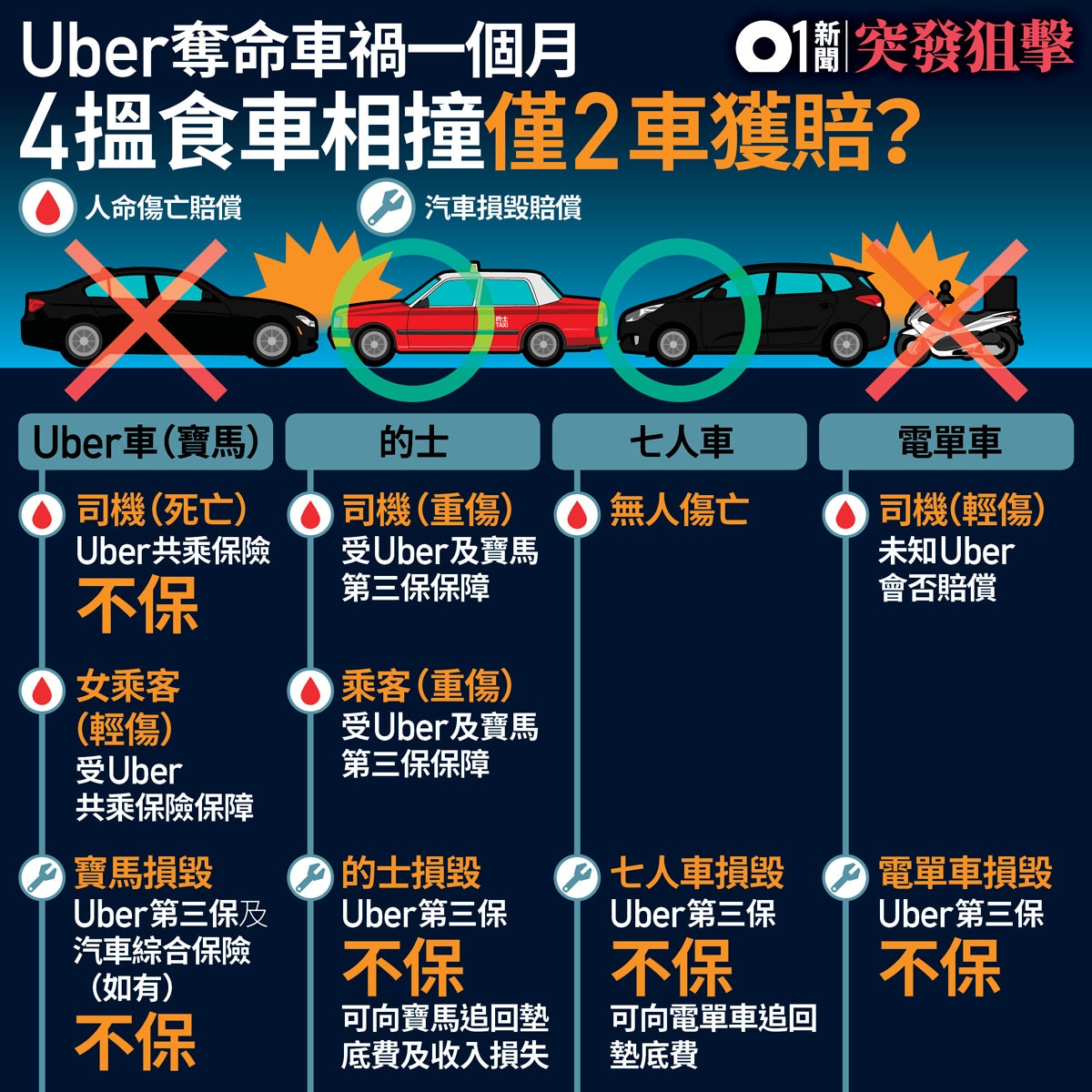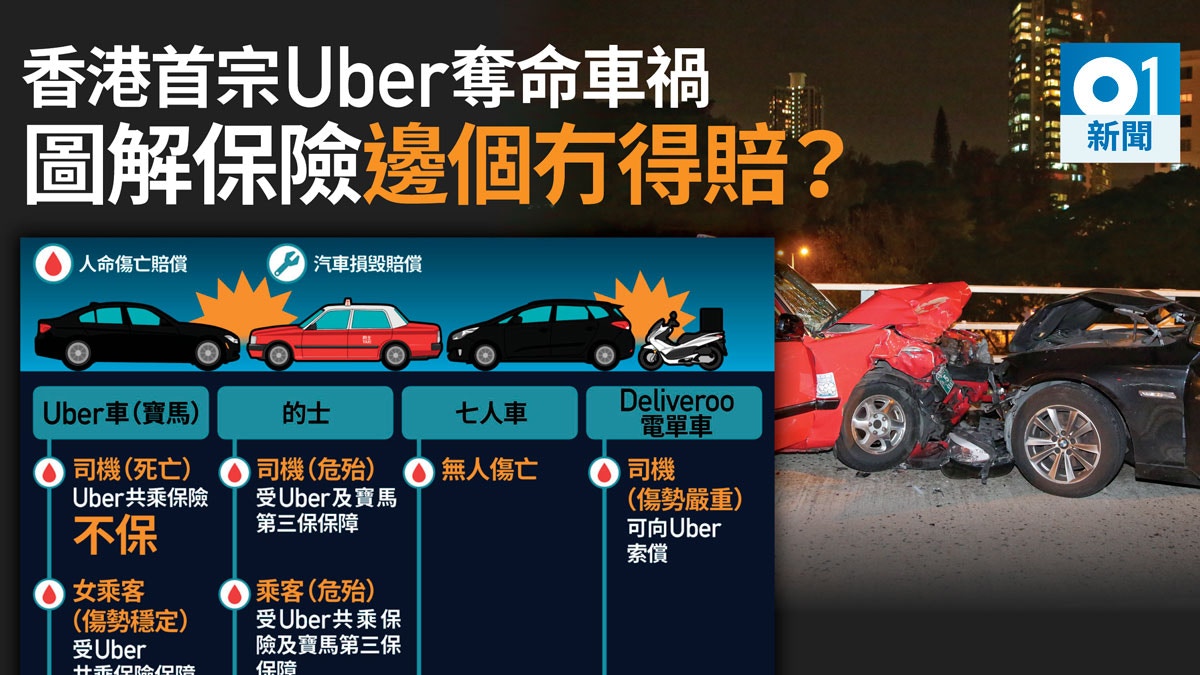 uber車禍 uber第三保不賠車四車撞僅兩車獲賠誰保誰不保 香港01 突發