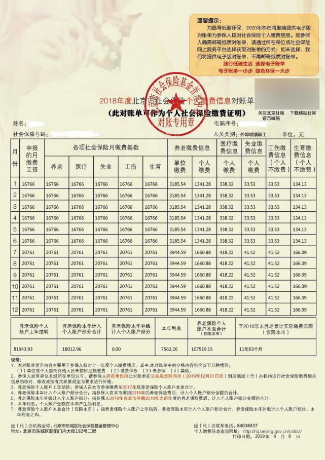 北京社保缴费明细 2018年7月 2019年6月 新闻 蛋蛋赞
