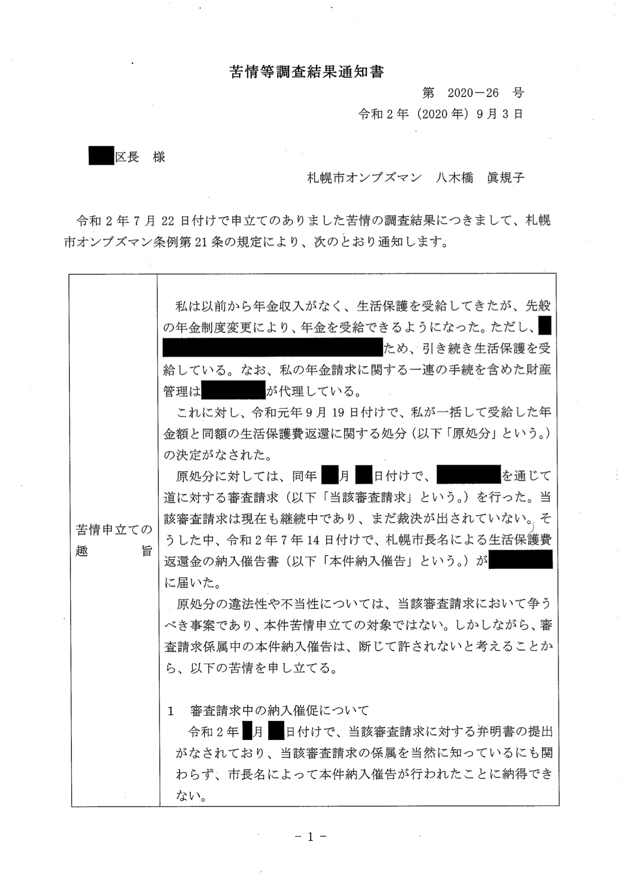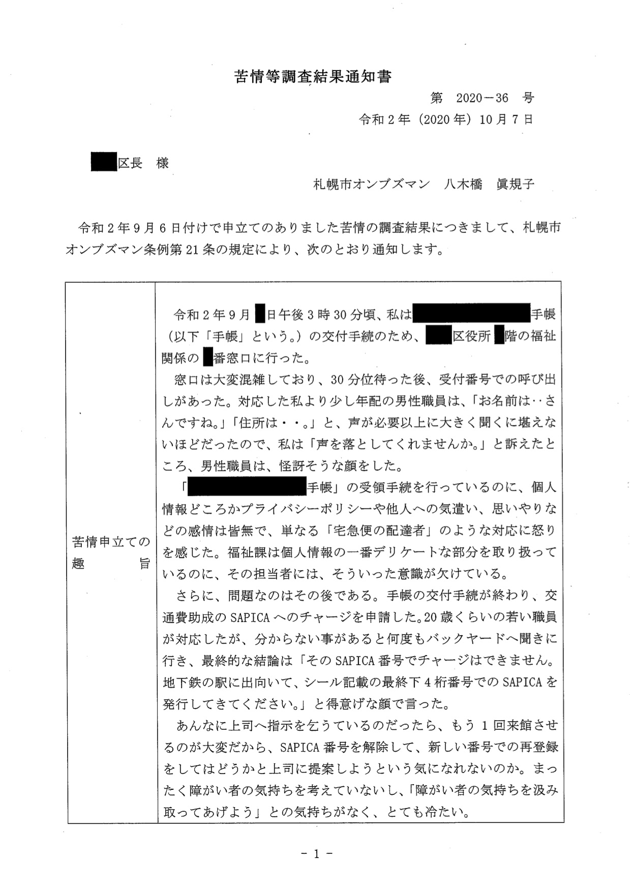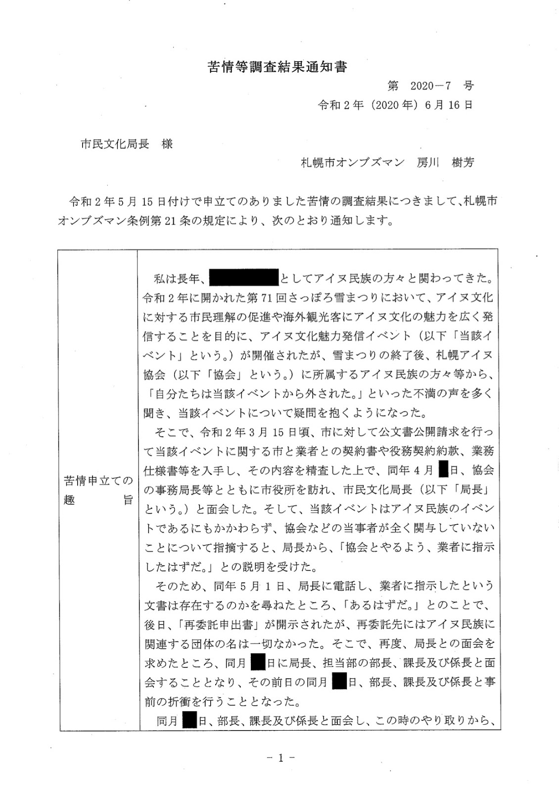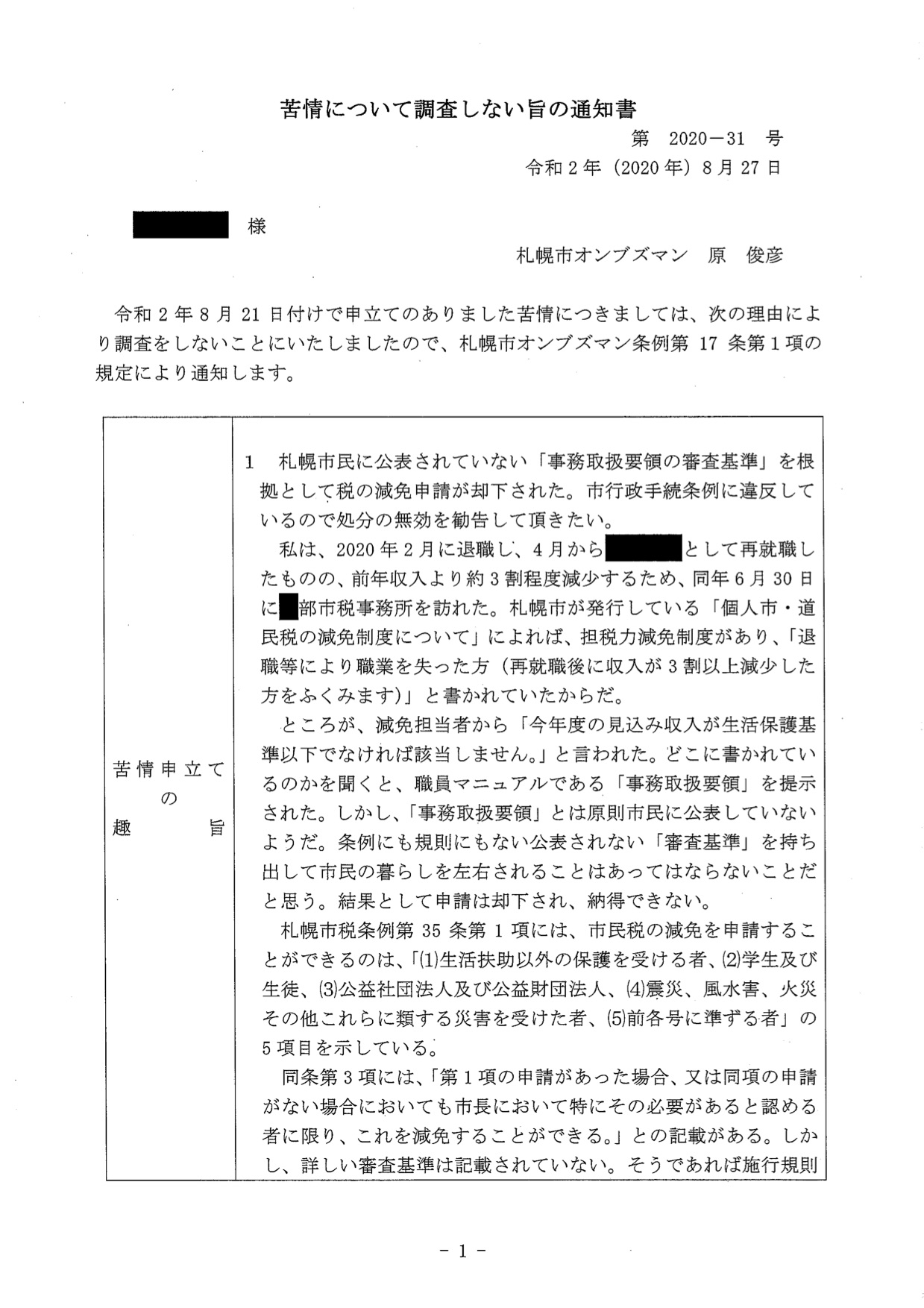 札幌市オンブズマン観察記 2020