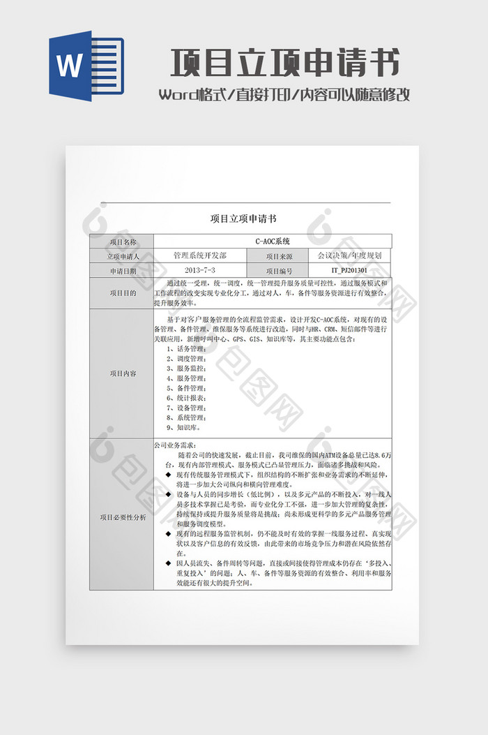项目立项申请书 word文档下载 包图网