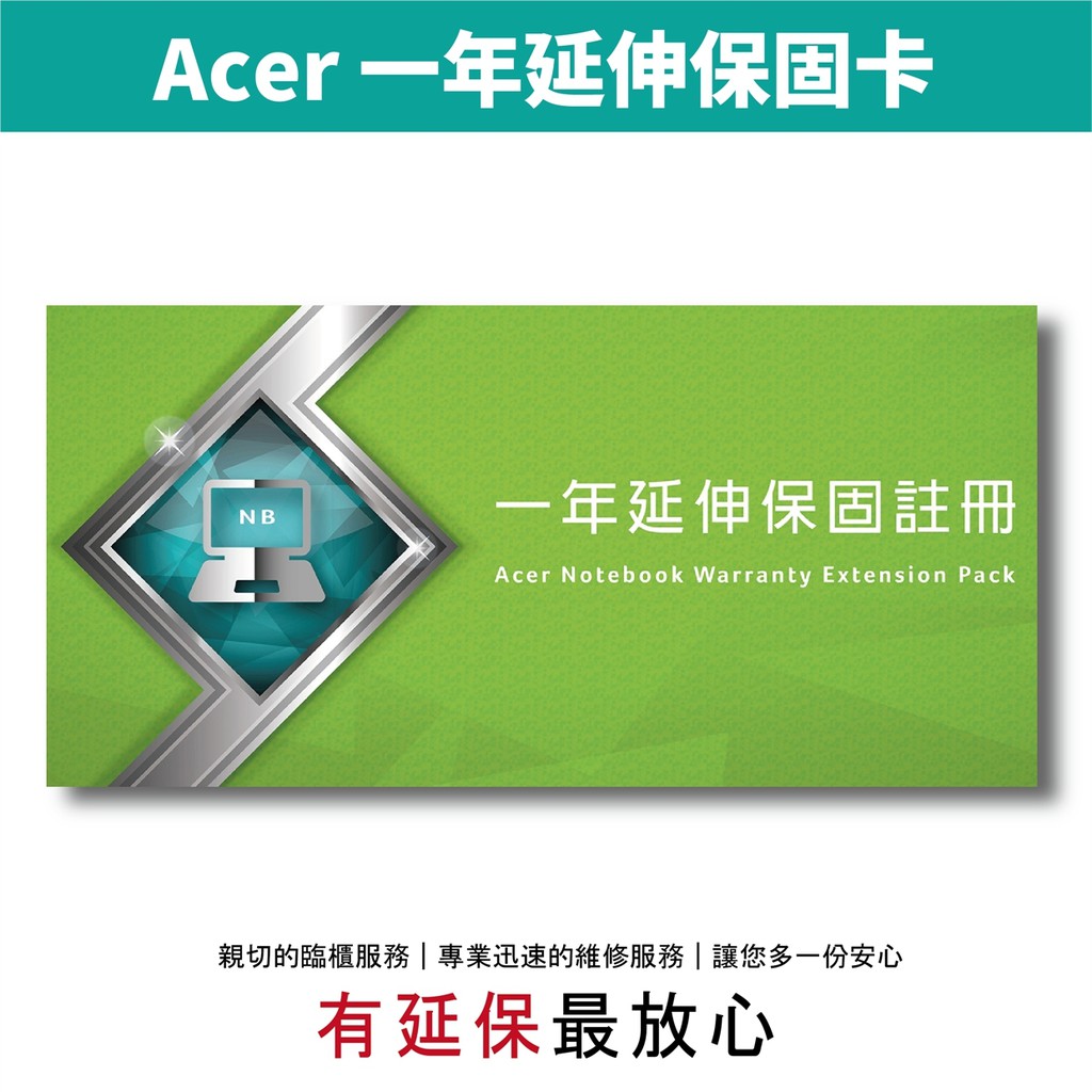 acer 筆記型電腦一年延伸保固卡 適用兩年保固機型 2021 延保一年