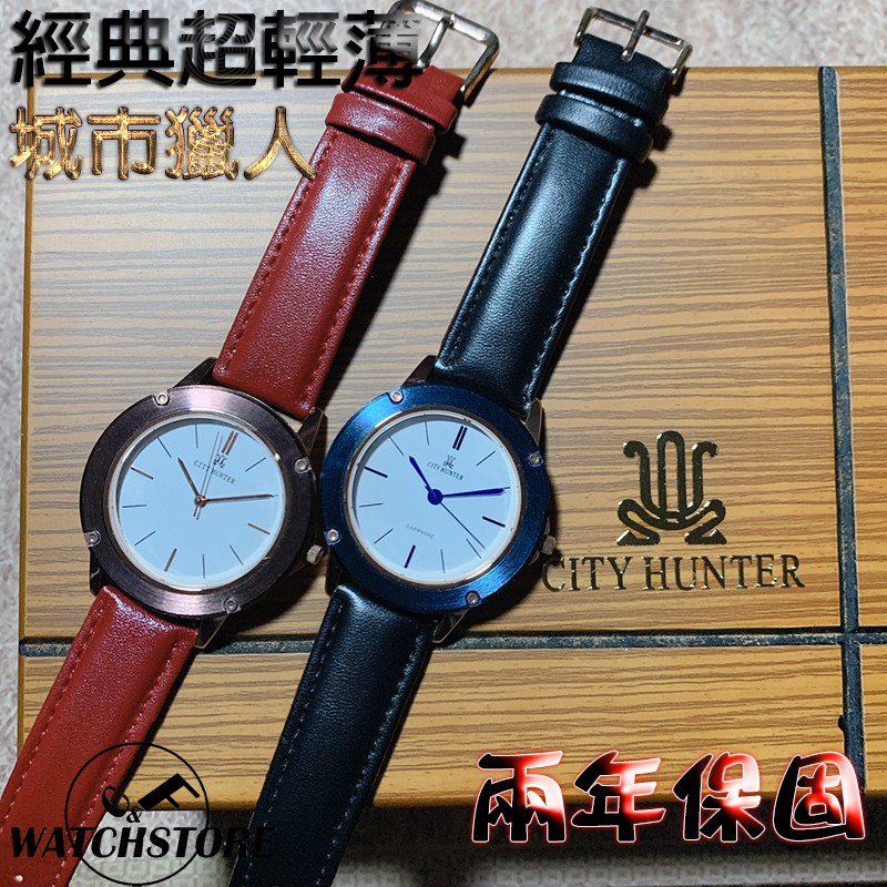 c f 城市獵人city hunter 超輕薄真皮腕錶 兩年保固 男表女錶