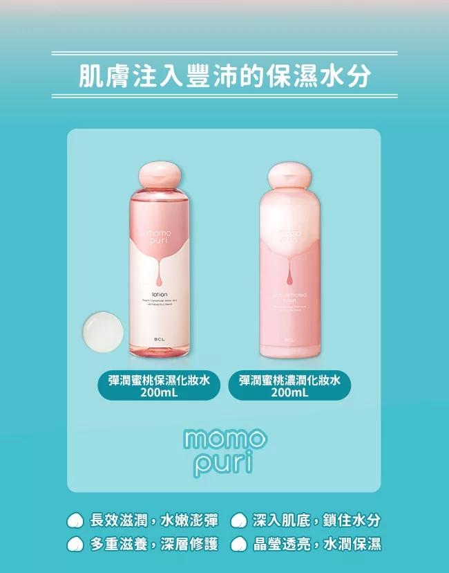 bcl momopuri蜜桃彈潤保養品 讓皮膚像喝飽水般q彈水潤 美力升級beauty upgrade