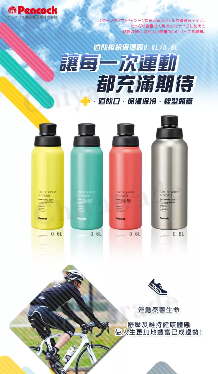 日本孔雀peacock 運動涼快不銹鋼保冷保溫杯800ml 防燙杯口設計 白 pchome 24h購物